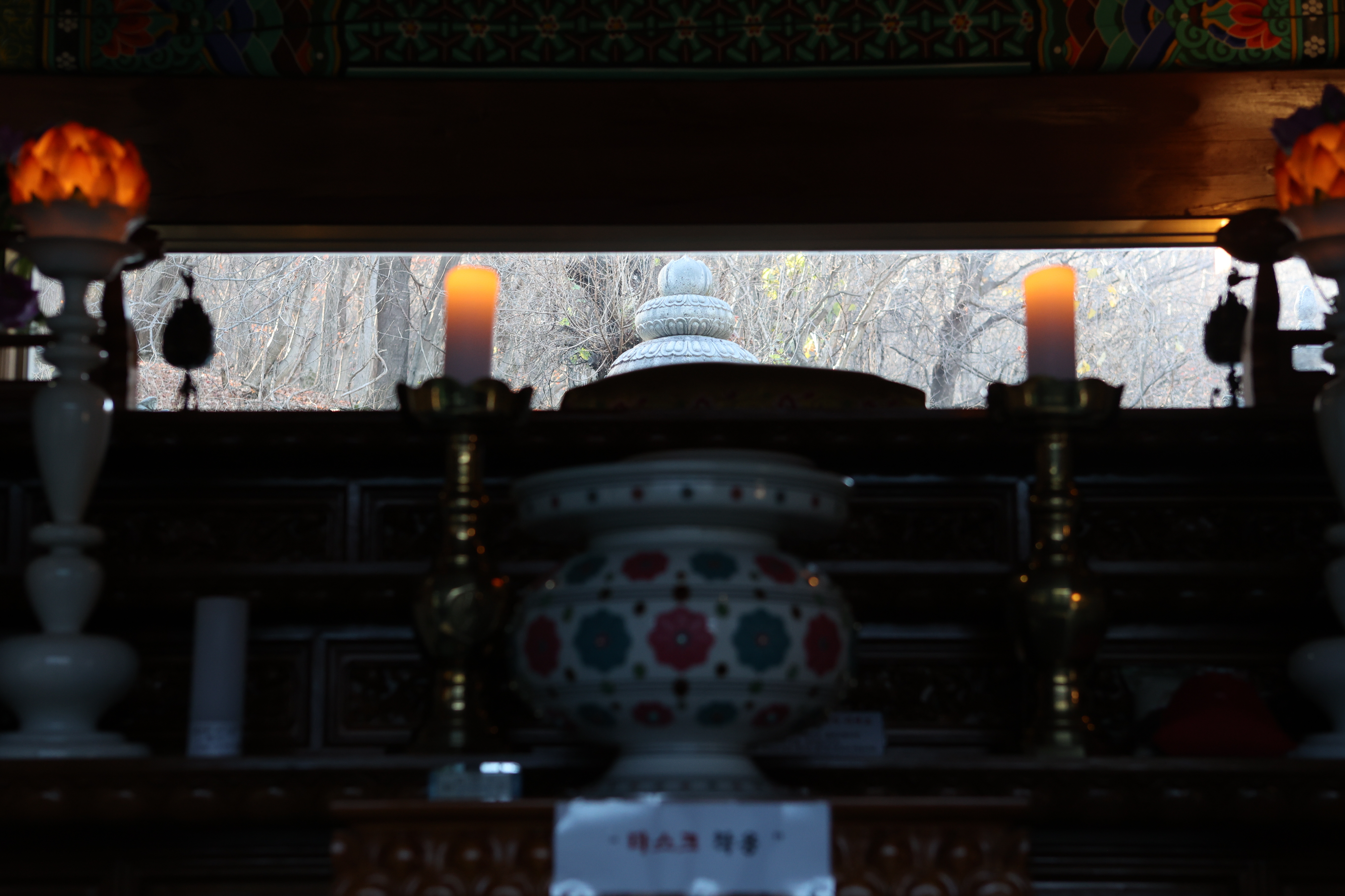 내일은 수능일, 적멸보궁 기원탑에 수능대박기원 촛불이 애틋하다.
