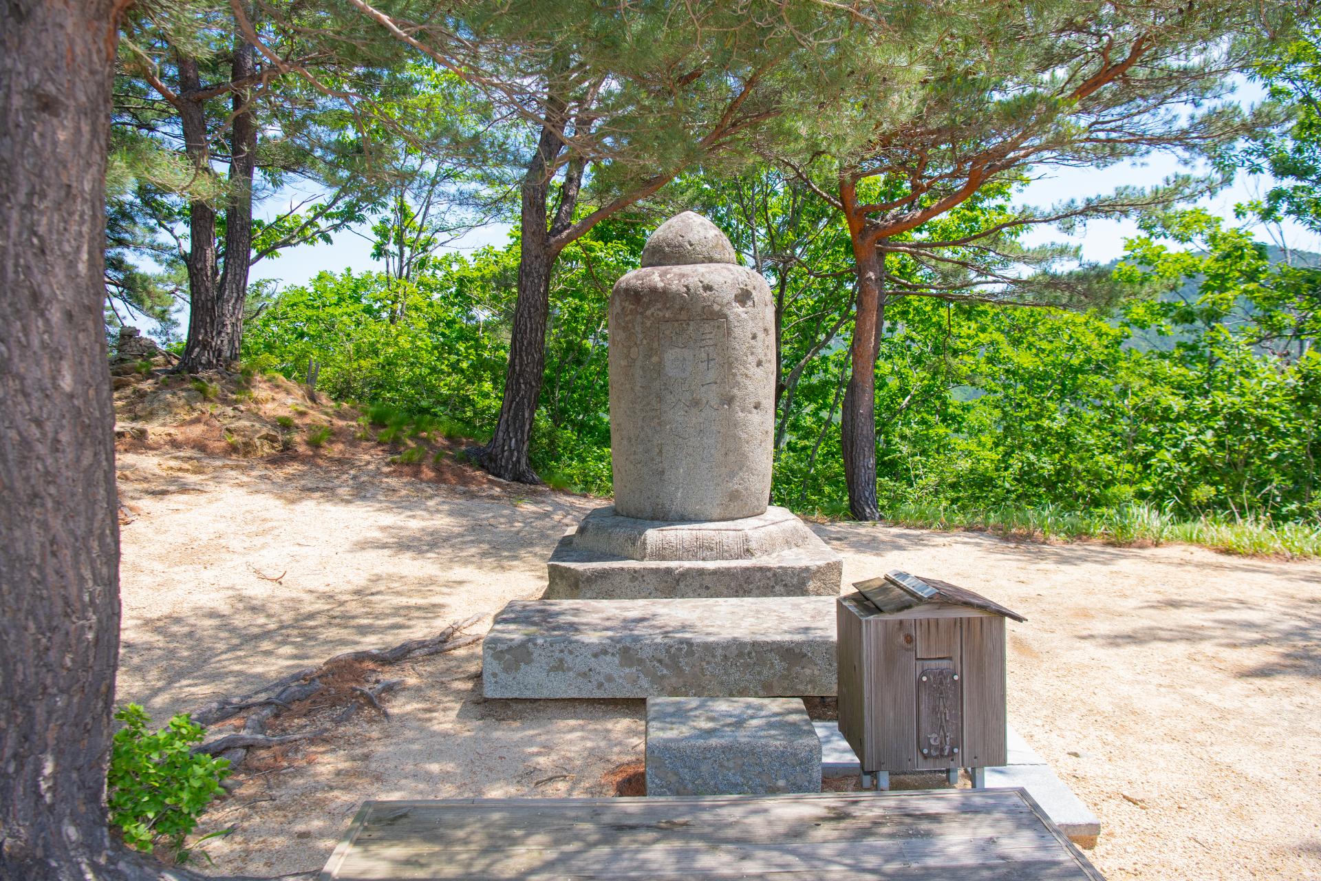 등공대(騰空臺). 건봉사 북쪽 1.5km 지점에 있다는 등공대도 유명하다. 염불만일회의 시작은 신라 경덕왕 17년(758년, 무술년)에 발징화상께서 원각사를 중수하고 염불만일회를 베푸니, 이것이 한국불교 염불만일회의 효시이다. 이 때 발징화상이 정신, 양순 등 스님 31명과 염불을 드렸는데, 뜻을 같이하는 신도 1,820명이 환희심이 일어 자원을 하였다. 그 가운데 120명은 의복을, 1,700명은 음식을 시주하여 주야로 쉬지 않고 기도를 하였는데, 신라 원성왕 3년(787년) 염불만일회에서 선행을 닦던 스님 31명이 아미타불의 가피를 입어 극락정토에 다시 태어났으며, 시주를 하던 신도들도 모두 극락왕생을 하였다. 탑에 새겨진 글씨 (三十一人謄高 遺蹟紀念之塔)가 보인다. 육신의 허물은 그대로 땅에 떨어트리고, 맑고 밝은 정신만 등공을 한 것이다. 한국 불교판 휴거(携擧)라고 해야 하나? 그 후 세월이 흘러 1900년인 광무4년에 들어, 스님들의 다비식을 거행한 곳을, 몸을 살랐다고 하여 소신대(燒身臺)라고 하였다. 사진은 고성군청에서 차용함.