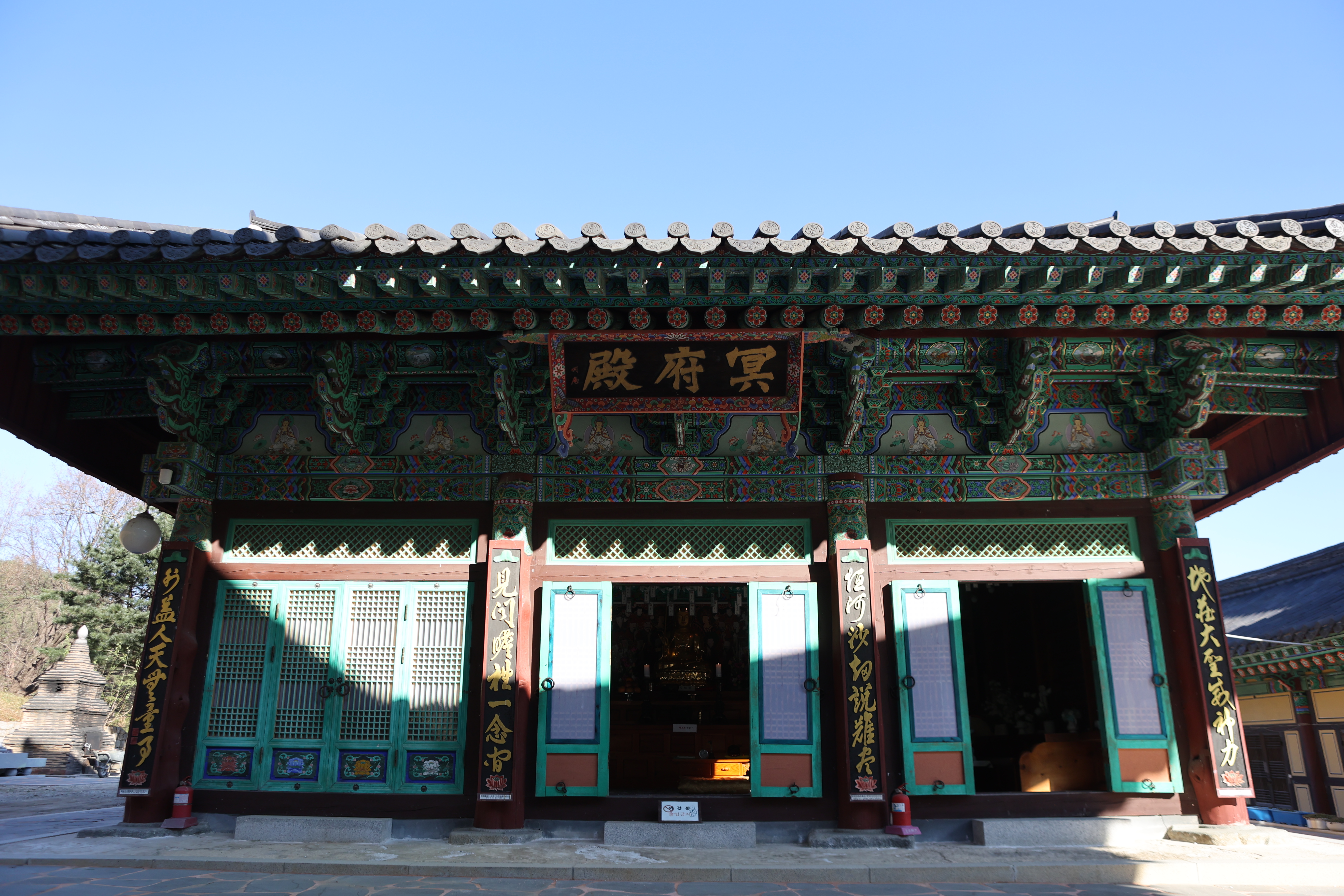 건봉사 명부전. 한국전쟁 때 전사한 군인들과 민간인들의 영령을 모신 의미있는 전각이다. 파사현정(破邪顯正)을 실천한 호국 도량이기도 하다.
